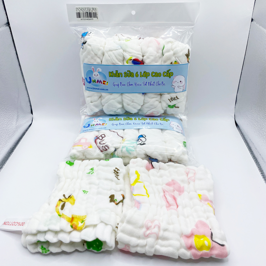 ✨Khăn Sữa Cotton Unmei 6 lớp cho Bé, 30x30cm, Khăn Vải Xô Dày dặn, Thấm Hút Tốt, Màu Trắng Hoa văn ngẫu nhiên