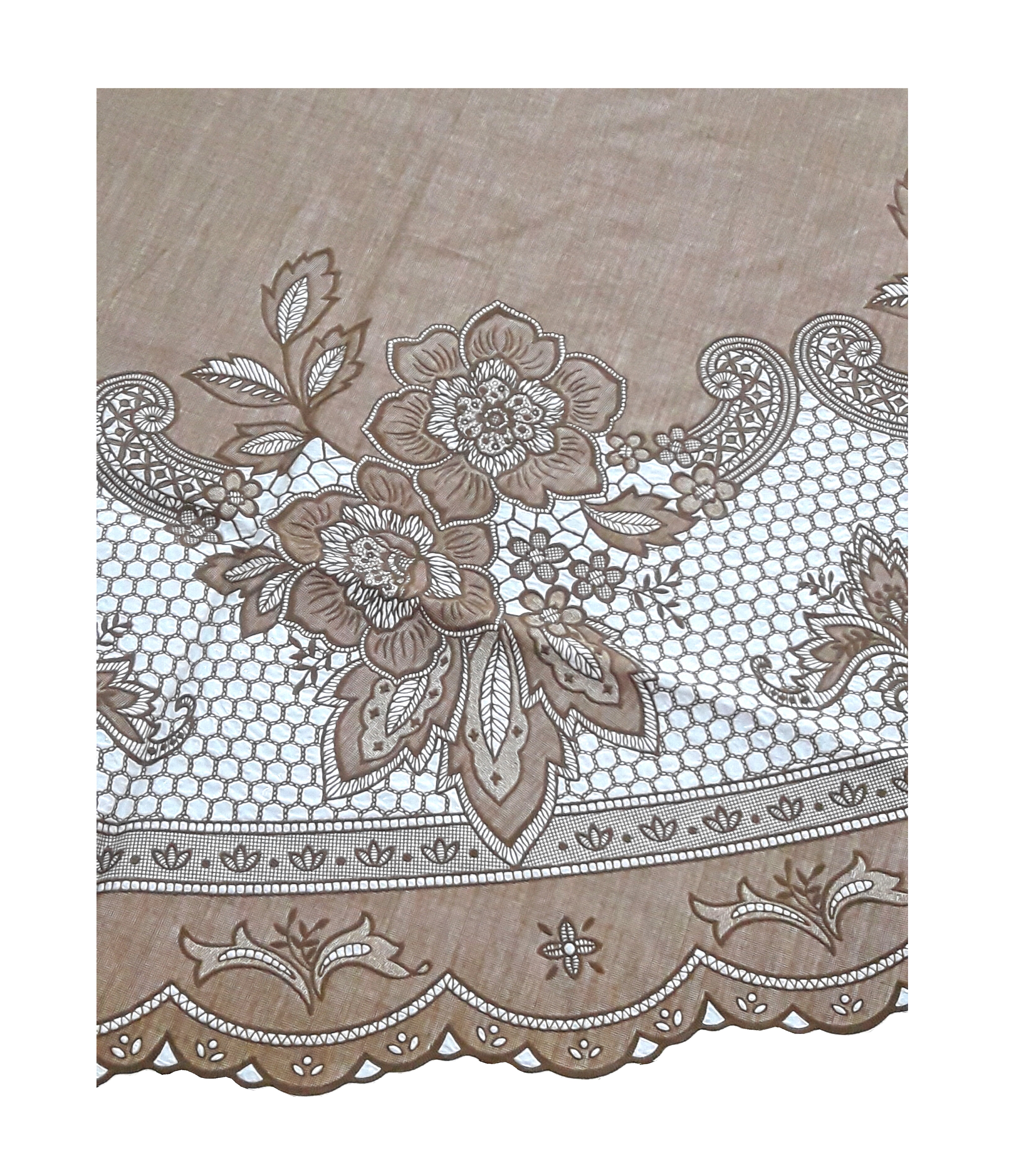 ✨KHĂN TRẢI BÀN PAULEE FY116 TRÒN - ĐƯỜNG KÍNH 178 CM- HOA VĂN - MÀU NÂU - KHÔNG THẤM NƯỚC.