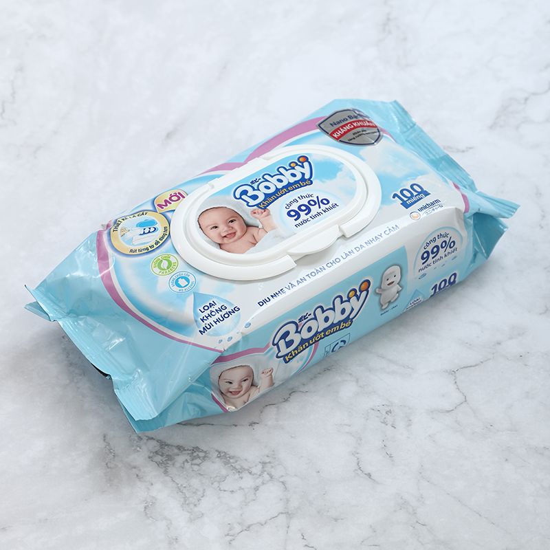 [ GÓC KHUI HÀNG ] KHĂN ƯỚT KHÔNG MÙI BOBBY 100 MIẾNG - KM BÉ NHỒI BÔNG CÁO.