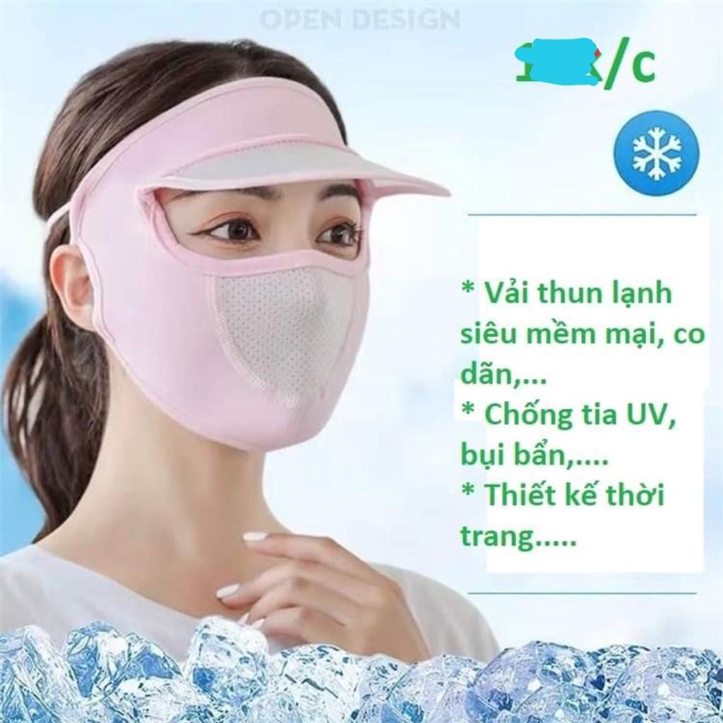 Mũ trùm đầu khẩu trang nón che nắng toàn mặt vải Lụa Băng Ice Silk thoáng khí Chống Tia UV 3 trong 1