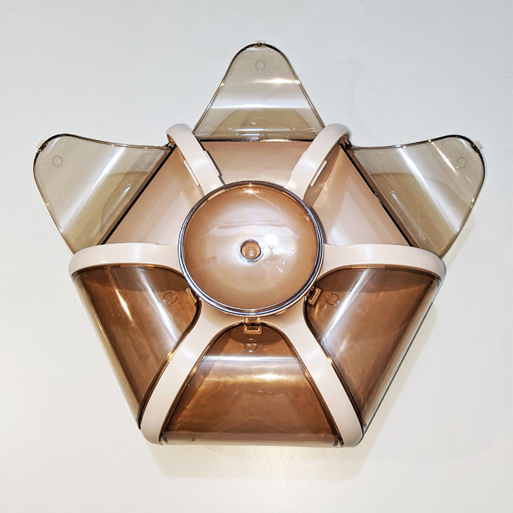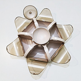 Khay được thiết kế hình bông hoa 6 cánh bung ra rất đẹp mắt và gọn gàng. Màu sắc trang nhã, siêu đẹp, phù hợp với mọi gia đình.