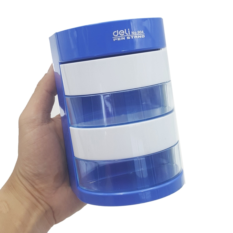 ✨Khay Cắm Bút 4 Ngăn Xoay Deli 0904 - Màu Xanh