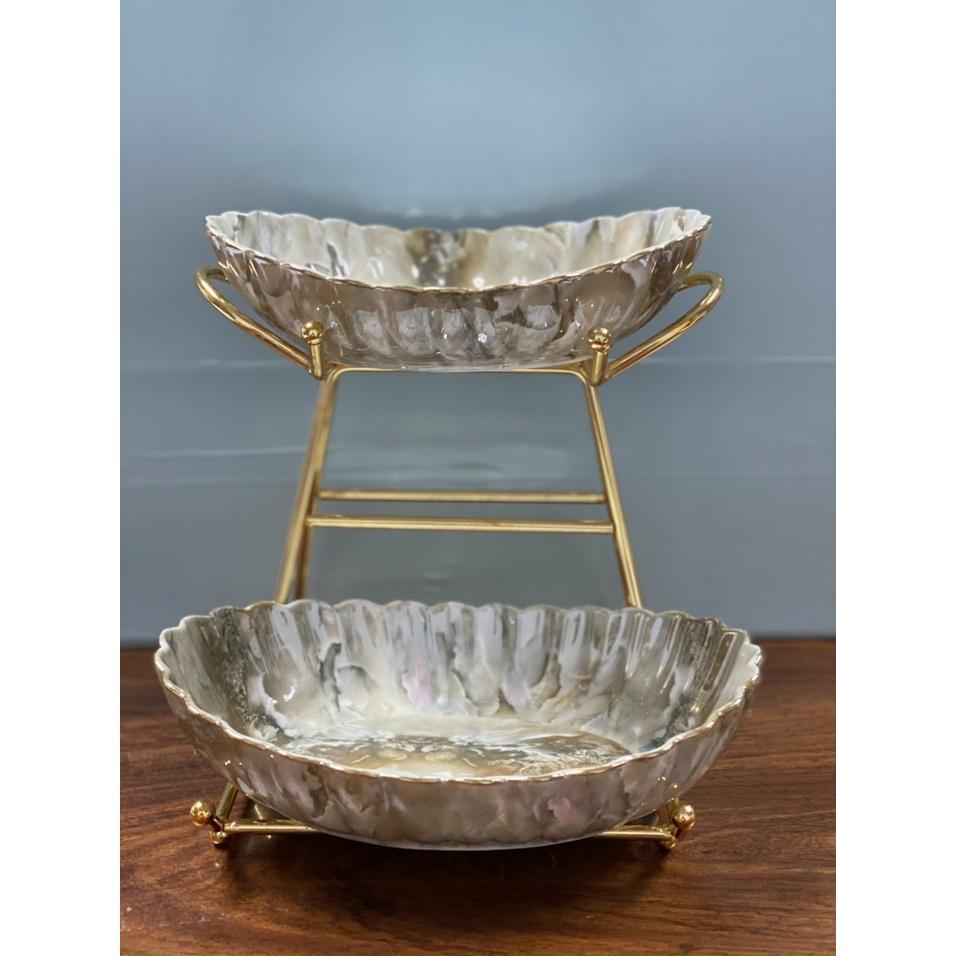 Khay sứ viền vàngđựng bánh kẹo 2 tầng sang trọng. Phù hợp sử dụng trong gia đình, cửa hàng và khách sạn. Thiết kế sang trọng và bắt mắt nhất hiện nay. Chất liệu: Khay