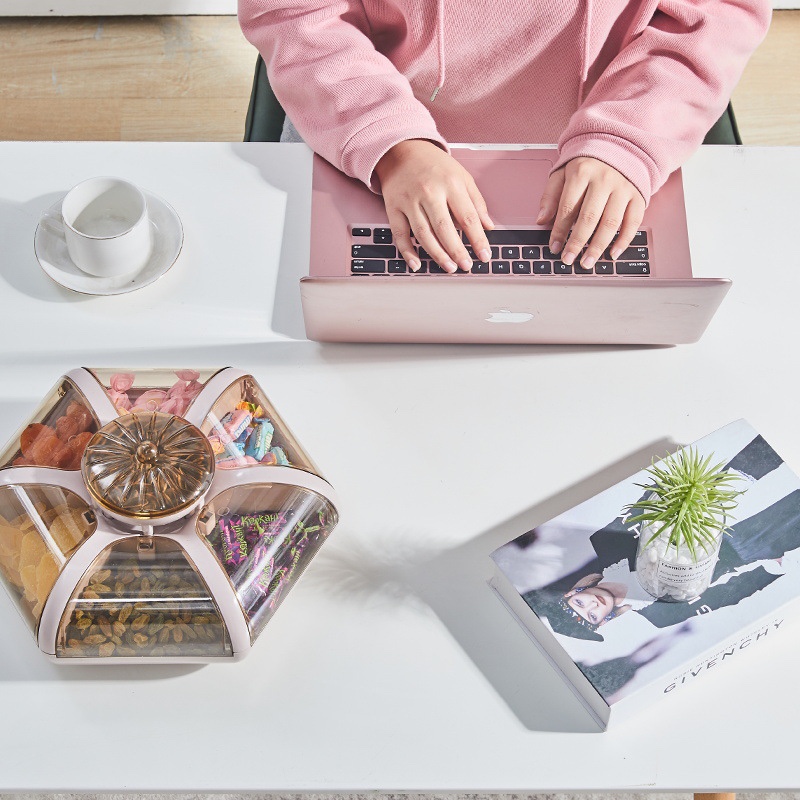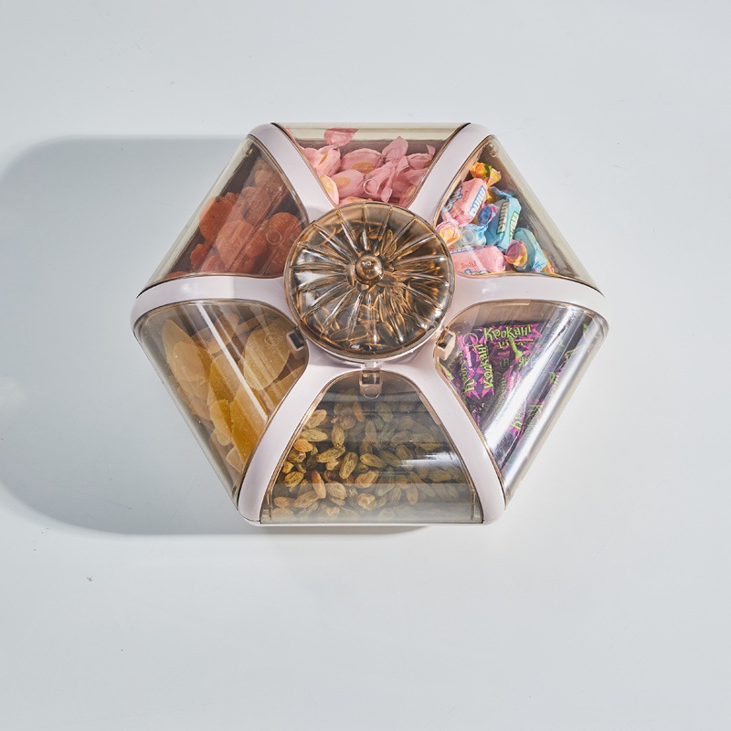 Khay đựng mứt kẹo mẫu mới được thiết kế với cách bung bông hoa 6 cánh. Thiết kế sang trọng tiện lợi. Với bông hoa 6 cánh và có nút nhấn chắc chắn. Thể tích lớn có thể sử dụng chất liệu nhựa an toàn cho người sử dụng, không bị ám mùi nhựa lên đồ ăn và thân thiện môi trường.