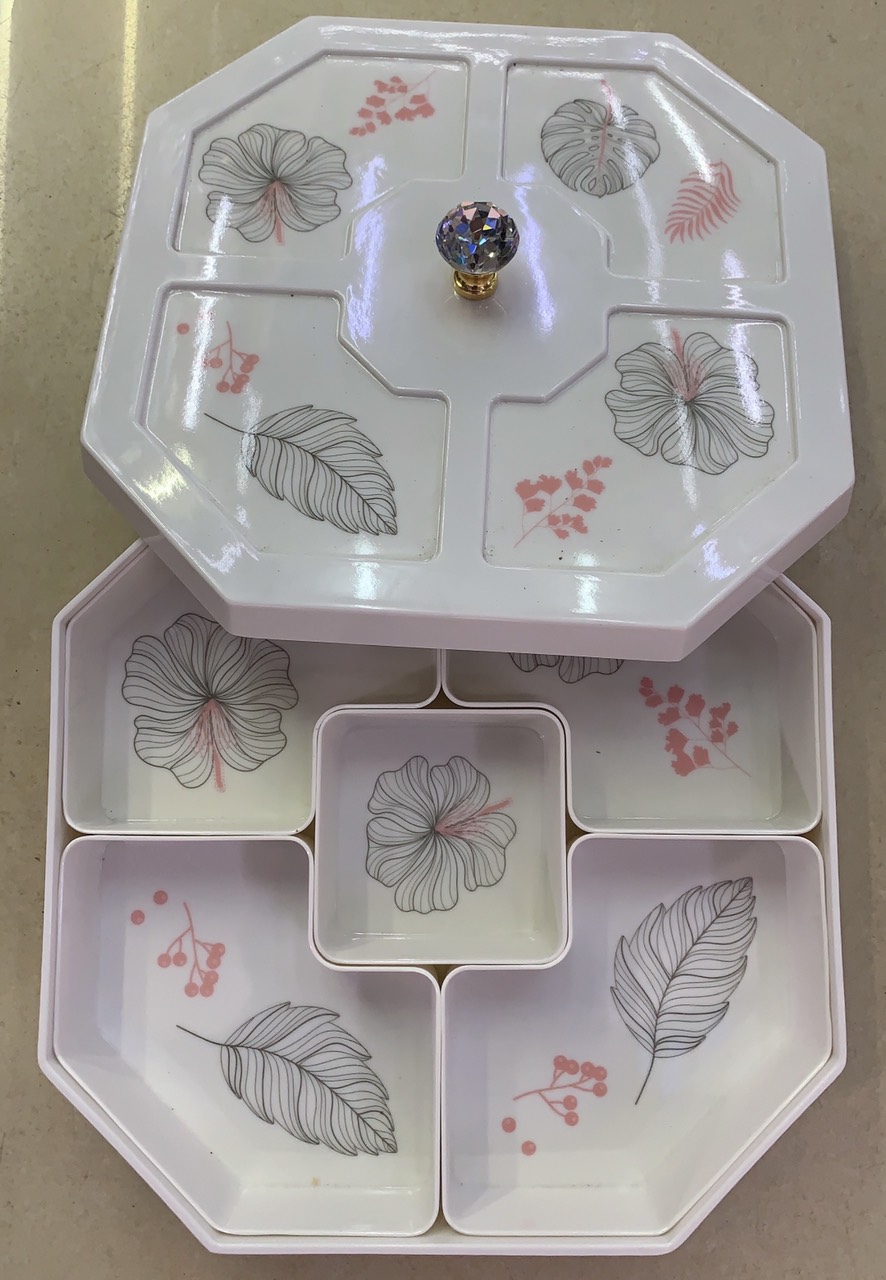 Khay đựng mứt nhựa phíp 5 ngăn 31cm - Khay có 5 ngăn, các ngăn nhỏ này có thể nhấc rời từng khay ra ngoài - Khay có nắp đậy kín đáo, đảm bảo vệ