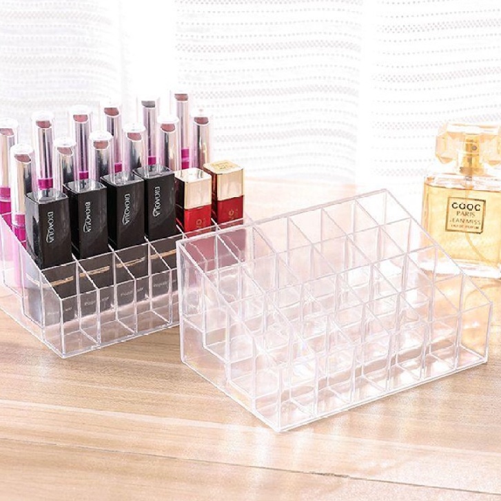 ✨Khay đựng son mica 24 ô trong suốt V.2, Khay đựng mỹ phẩm, son môi, dụng cụ trang điểm 24 ô GROFA