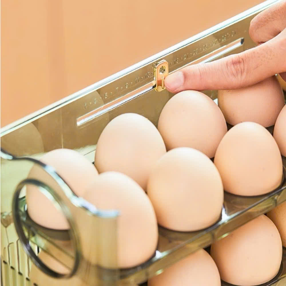Khay Đựng Trứng 3 Tầng Thông Minh – Chứa 30 Quả, Nhựa PET Cao Cấp, Có Thang Ghi Nhớ Thời Gian