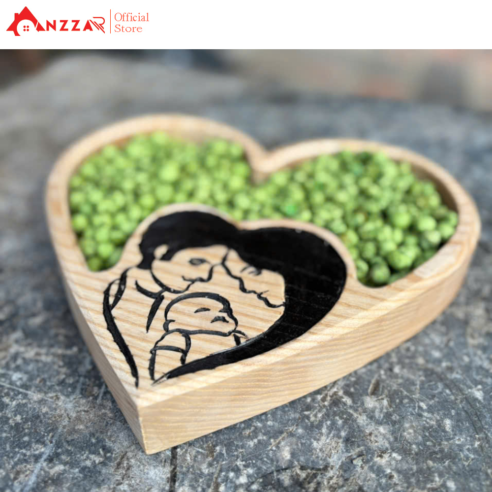 Mua tại TiktokKhay gỗ trái tim khắc hoa Anzzar – Gỗ tần bì & óc chó nguyên khối – Khay decor bàn ăn / quà tặng THÔNG SỐ SẢN PHẨM Kích thước: 26 x 20 x 3.5