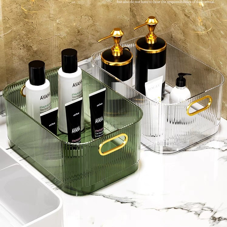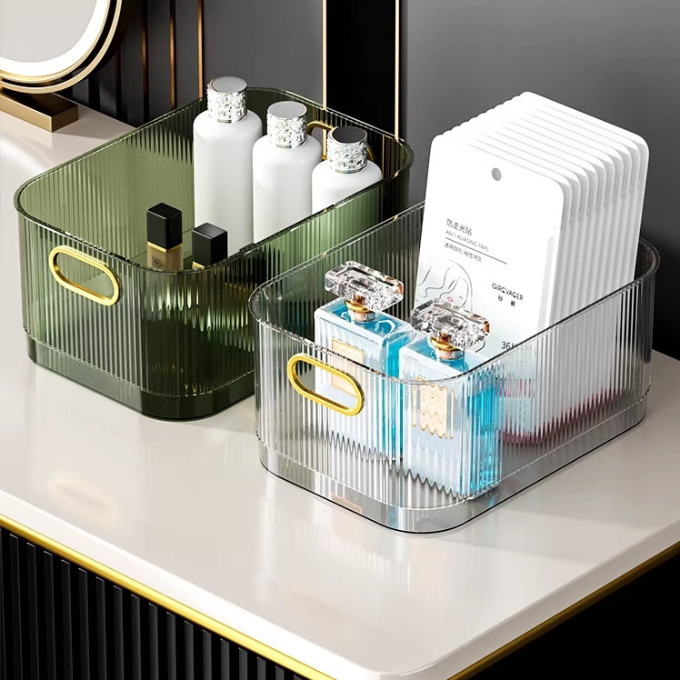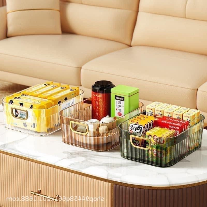 -Khay hộp đựng đồ lưu trữ để bàn sang trọng ,đựng mỹ phẩm đồ trang điểm trong suốt cao cấp giả Pha Lê , có thể dùng đựng đồ trong nhà tắm ,đựng hũ gia vị đồ nhà bếp hoặc để hoa quả trong tủ lạnh , có 2 lỗ tay cầm mạ vàng , vừa tiện lợi vừa sang trọng