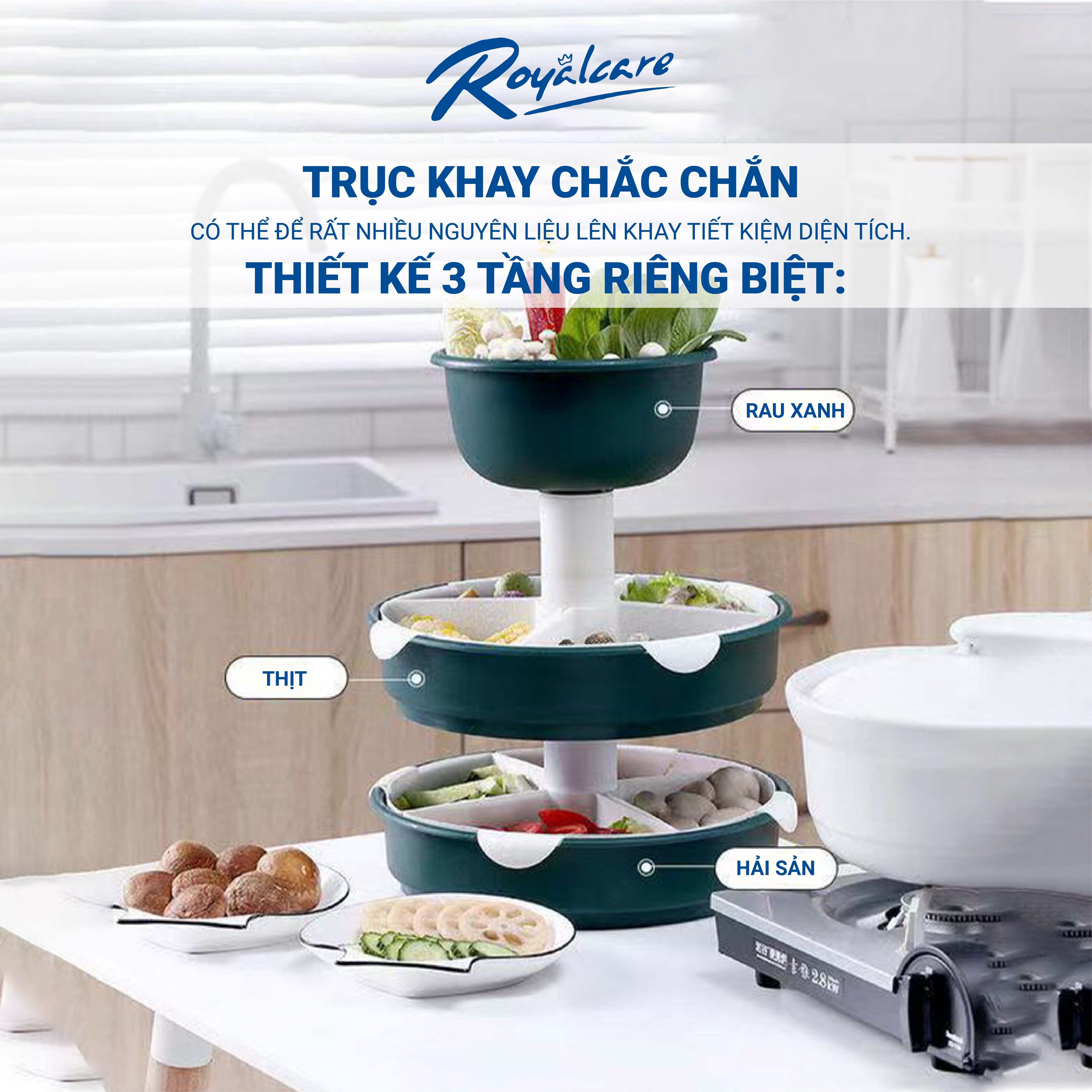 Khay đựng thức ăn , hoa quả , rau ăn lẩu đa năng Royal Care xoay 360 độ nhiều ngăn phân loại