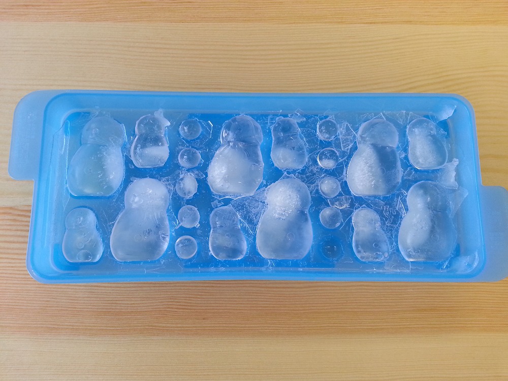 Khay làm đá gồm: 6 viên người tuyết lớn, 6 viên người tuyết nhỏ, 10 viên cầu tuyết tròn nhỏ