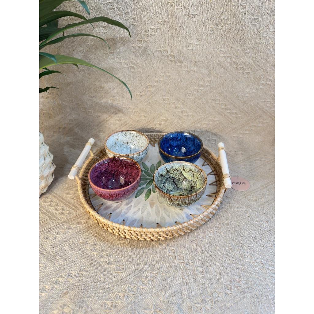 ✨Khay mây tròn khảm trai có tay cầm ONGTRE đựng đồ, trang trí tiệc, decor chụp ảnh sản phẩm - OTT1