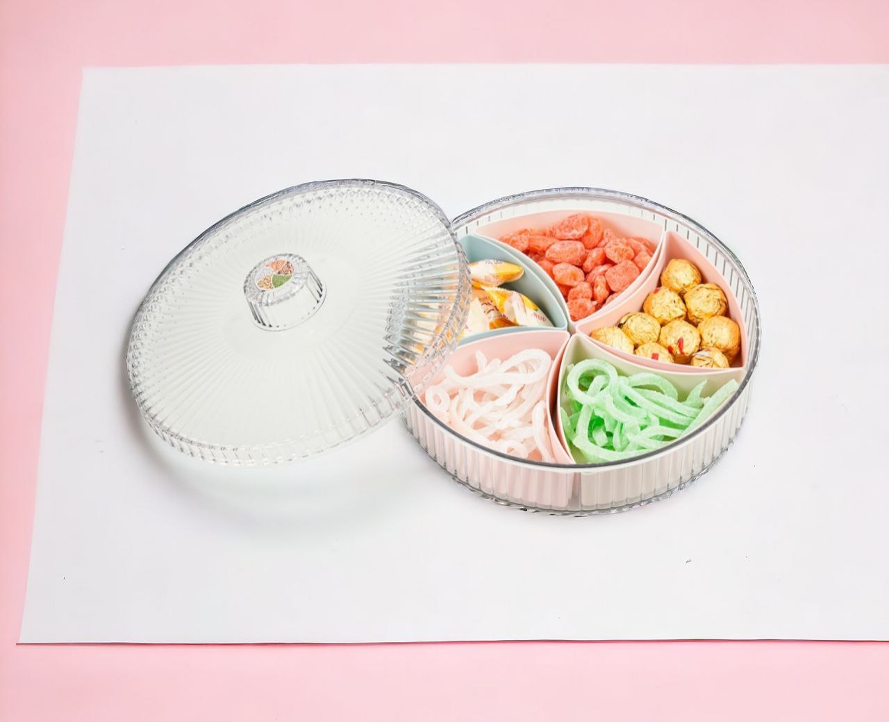 Khay đựng mứt kẹo mẫu mới nhất năm nay 5 ngăn chính có nắp đậy