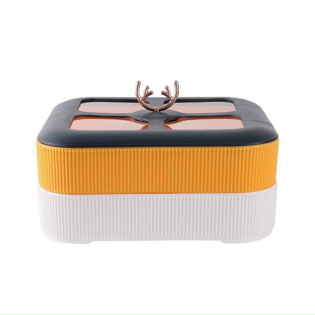 Khay Mứt Tết Vuông 2 Tầng Hình Sừng Hươu Vàng Phong Cách Hiện Đại Châu Âu,Sang Trọng,Lịch Sự