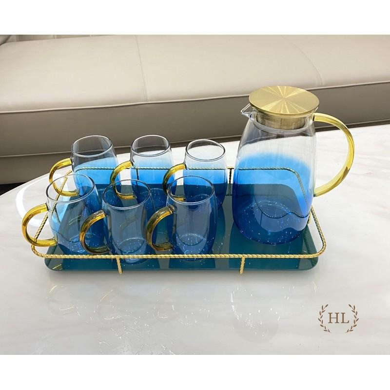 Bộ khay bình nước 6 cốc thuỷ tinh cao cấp