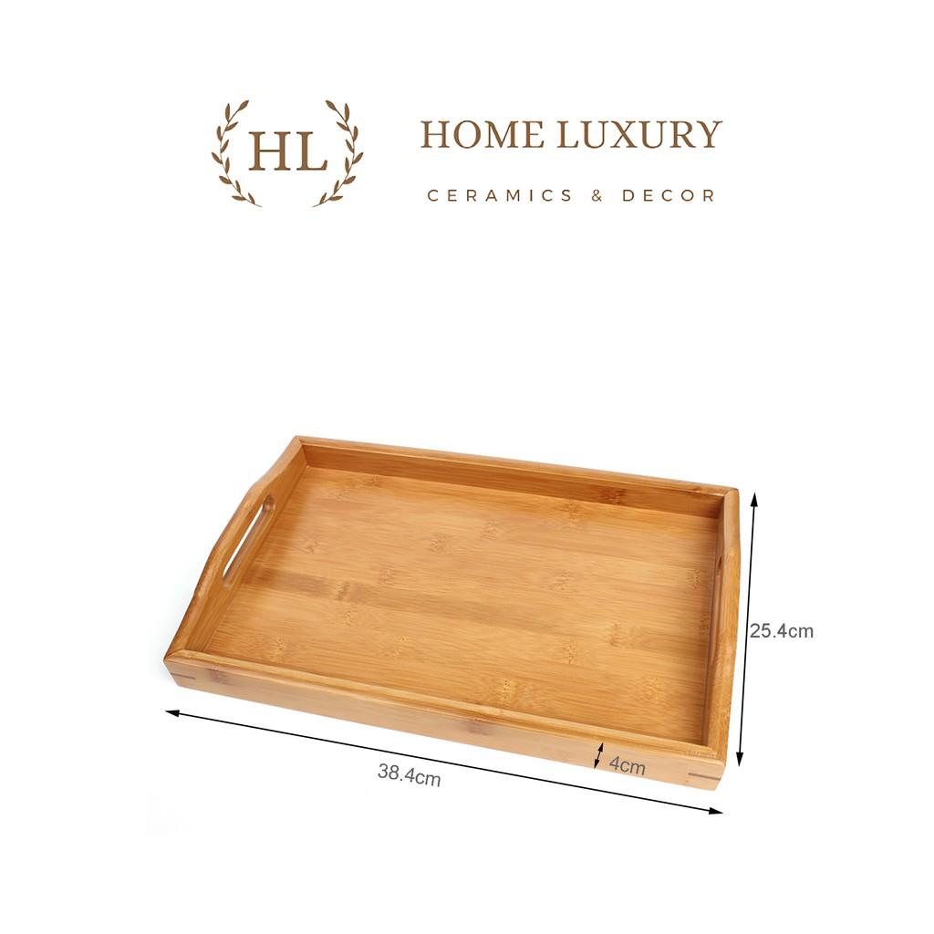 Khay gỗ chữ nhật đựng trà bánh được làm từ chất liệu gỗ tre tự nhiên cao cấp, tinh tế trong từng đường nét, màu sắc ấm dịu và gần gũ Khay gỗ trang trí