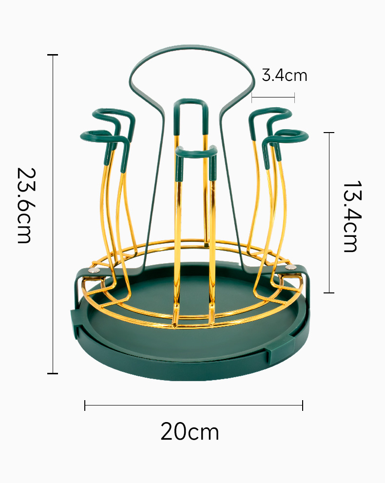 GIÁ KHAY ÚP LY CỐC KIM LOẠI MÀU VÀNG - XANH CỔ VỊT CÓ ĐĨA HỨNG NƯỚC CAO CẤP