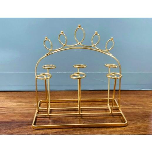 Giá cắm 6 chiếc cốc dạng gọn (CL95965) Giá có khay hứng nước Chất liệu sắt sơn tĩnh điện cao cấp màu vàng cực sang chảnh Dễ vệ sinh, không bị hoen rỉ Kiểu dáng