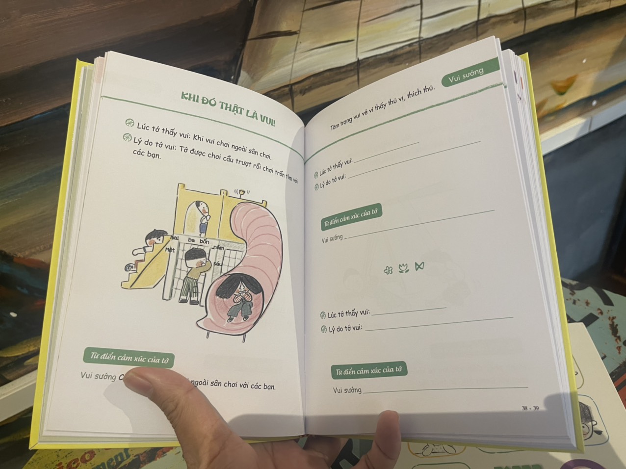 Bộ sách Khi tớ lên 9 gồm 4 cuốn, “Khi tớ lên 9 - Cuốn từ điển của tớ” là cuốn sách minh họa giúp trẻ luyện viết ra các biểu hiện cảm xúc, cảm giác của mình cũng như luyện tập các từ vựng cần thiết trong quá trình giao tiếp và ứng xử với người khác. Khi luyện tập theo hướng dẫn của sách, trẻ sẽ có thể tạo ra và lưu giữ được “cuốn từ điển của riêng mình” bằng các từ vựng, hình vẽ biểu hiện cảm xúc của riêng mình một cách tự nhiên.