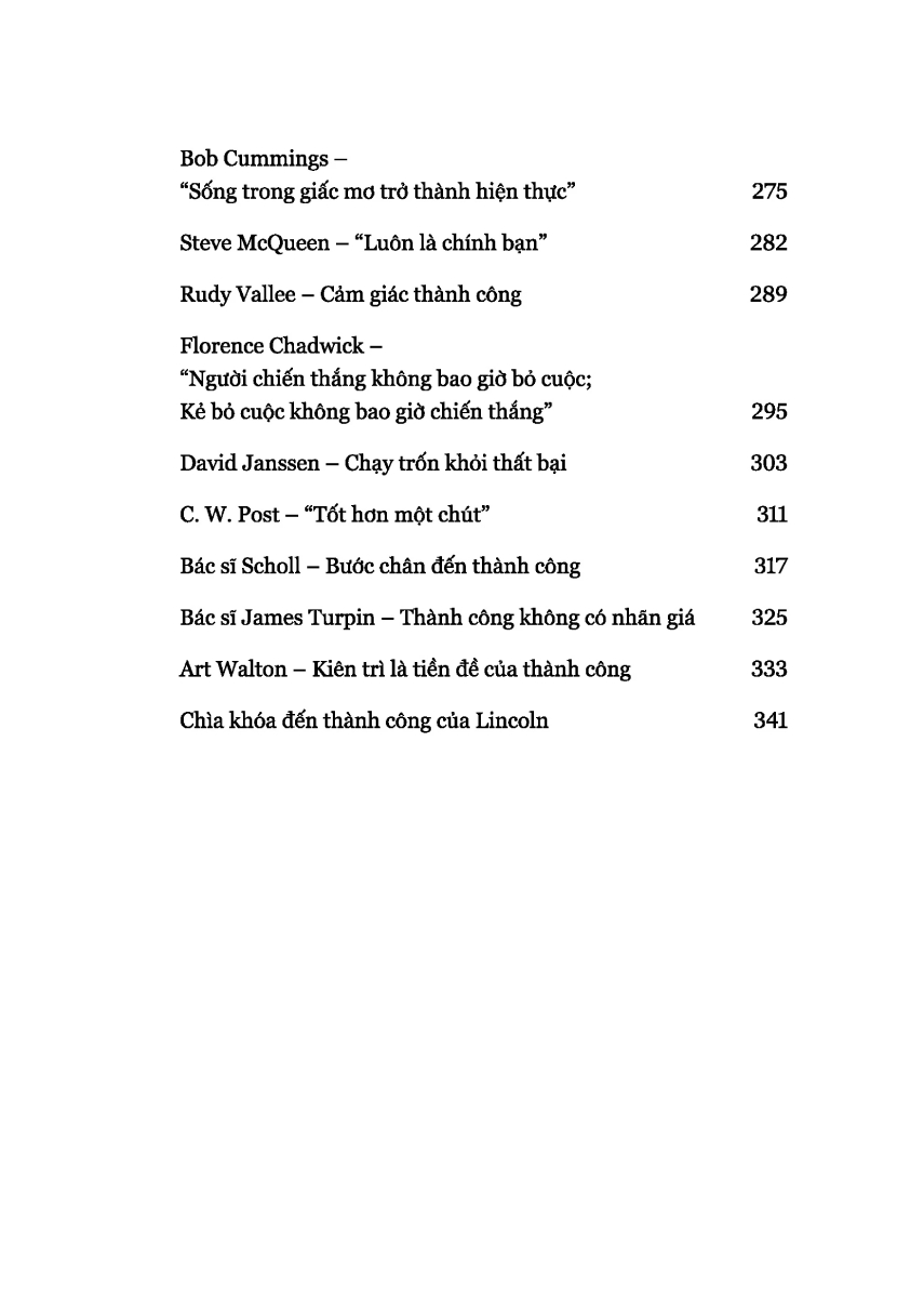 Trong cuốn sách, bạn có thể bắt gặp câu chuyện thành công của W. Cle.ment Stone – người khởi đầu là một cậu bé bán báo trên đường phố, sau đó tích lũy kinh nghiệm và chia sẻ với người khác khối tài sản trị giá hơn 160 triệu đô la; hay câu chuyện về nhà soạn nhạc George Handel từng bị cả xã hội th.ượng l.ưu quay lưng, nhưng sau đó đã vượt lên mọi cơn bão để trở thành nhà soạn nhạc được cả thế giới kính trọng;…