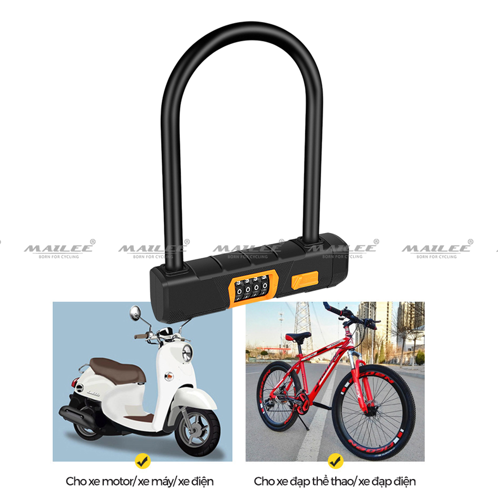 Khóa Chữ U Chống Trộm Cho Xe Máy/ Xe Điện/ Xe Đạp U-0511 Hợp Kim Thép Vỏ PVC - Khóa Mã 4 Số + Cáp Thép 1m2 (tùy chọn) - Mai Lee - Sản phẩm