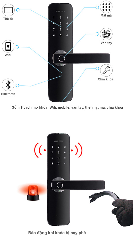 - Khóa phím khi nhập mã sai 5 lần liên tiếp