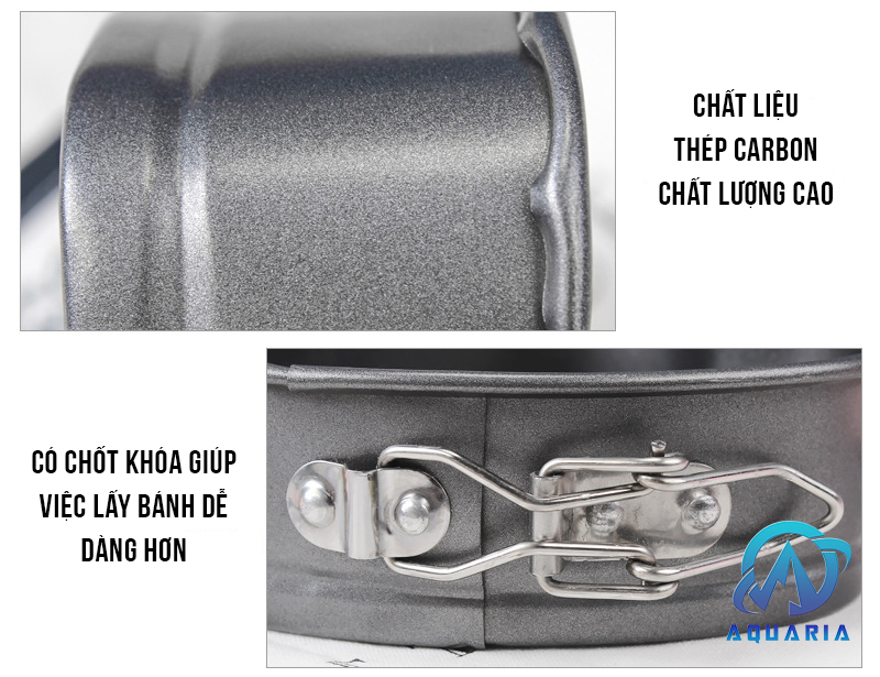 Khuôn làm bánh được làm bằng thép các bon có khả năng chịu nhiệt tốt, trọng lượng nhẹ, dễ sử dụng, dẫn nhiệt tốt giúp bánh chín đều.
