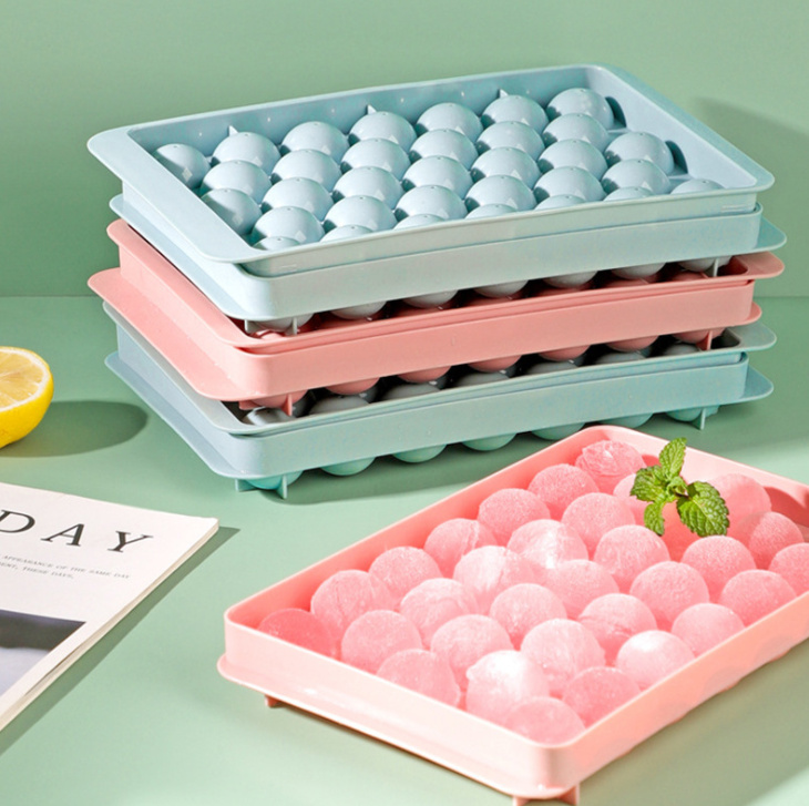 Khay Đá Bi Tròn 33 Viên Để Tủ Lạnh Tiện Lợi Có Nắp Đậy, Khuôn Làm Thạch, Rau Câu Bi Tròn - 6978