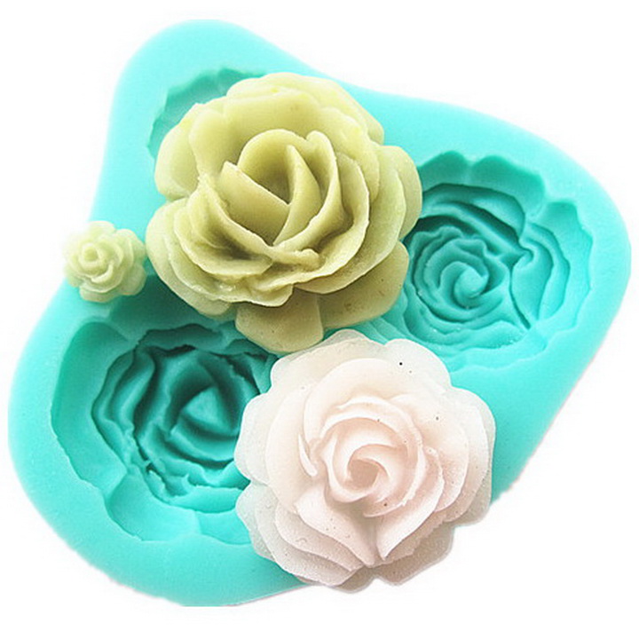 Khuôn silicon làm bánh, rau câu, socola 4 hoa hồng – Mã số 1045