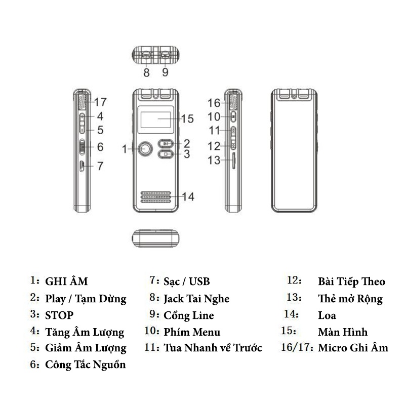 TÍNH NĂNG CƠ BẢN - Hỗ trợ đa ngôn ngữ (không bao gồm tiếng Việt). - Ghi âm đơn giản chỉ với 1 nút record. - Giao diện trực quan, dễ sử dụng - Có