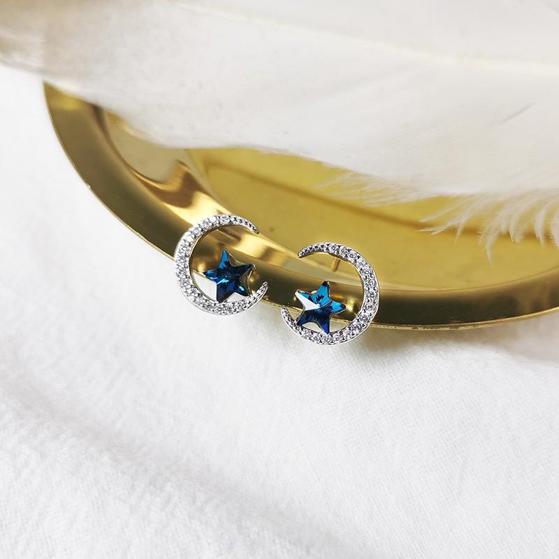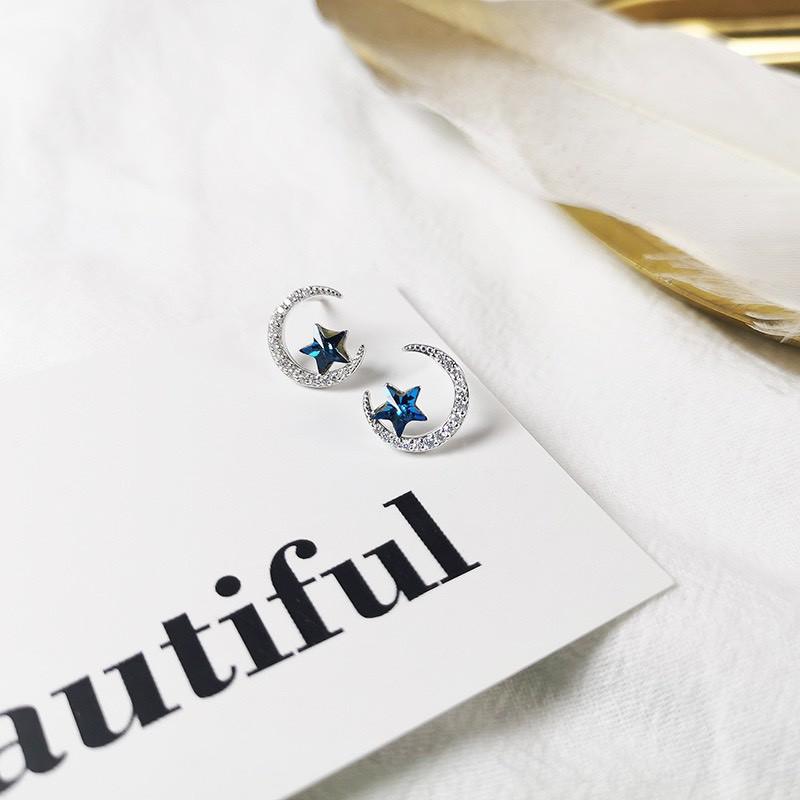 Khuyên tai bạc 925 trăng sao xanh đính đá lấp lánh long lanh nổi bật trẻ trung thanh lịch Dế Bạc - K5359