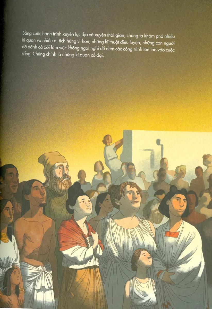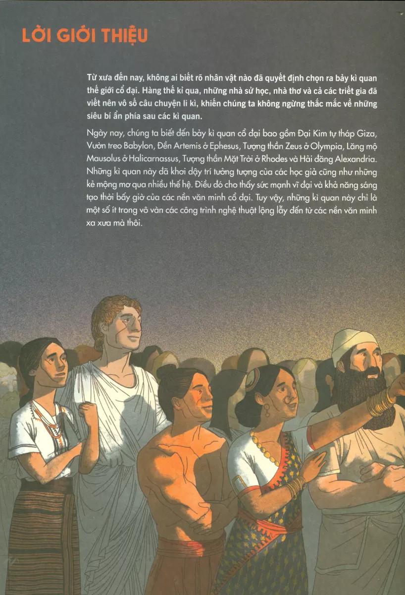 Những di tích hùng vĩ, những công trình kiến trúc nguy nga và các tác phẩm điêu khắc đáng kinh ngạc đều có trong quyển sách này. Bên cạnh đó, các minh họa chi tiết và đặc sắc của họa sĩ Avalon Nuovo sẽ giúp chúng ta khám phá các kì quan cổ đại của thế giới.