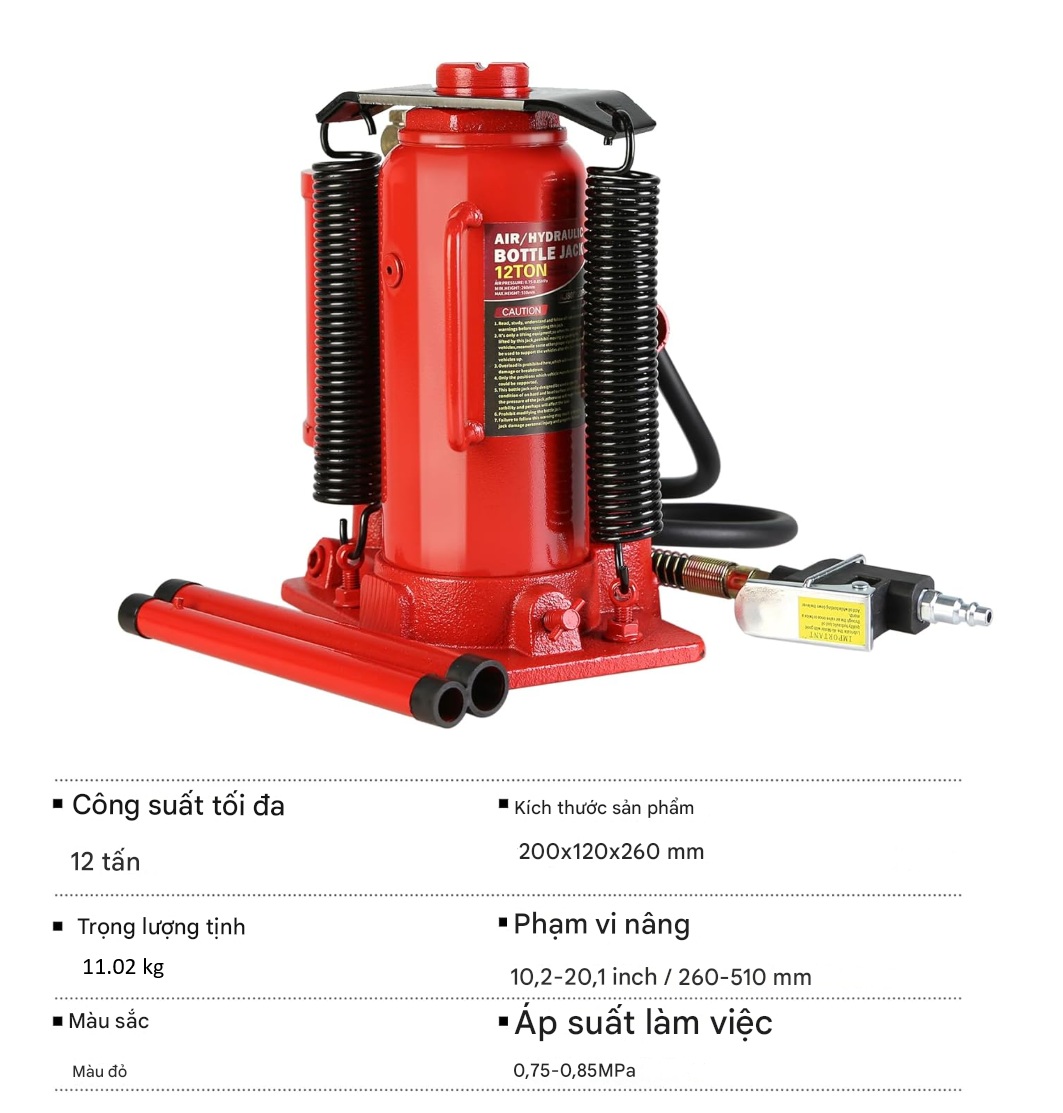 Mua tại TiktokKích Con Đội Thủy Lực Dùng Hơi 12 Tấn – Nâng Hạ Nhanh Chóng, Hiệu Quả Cao