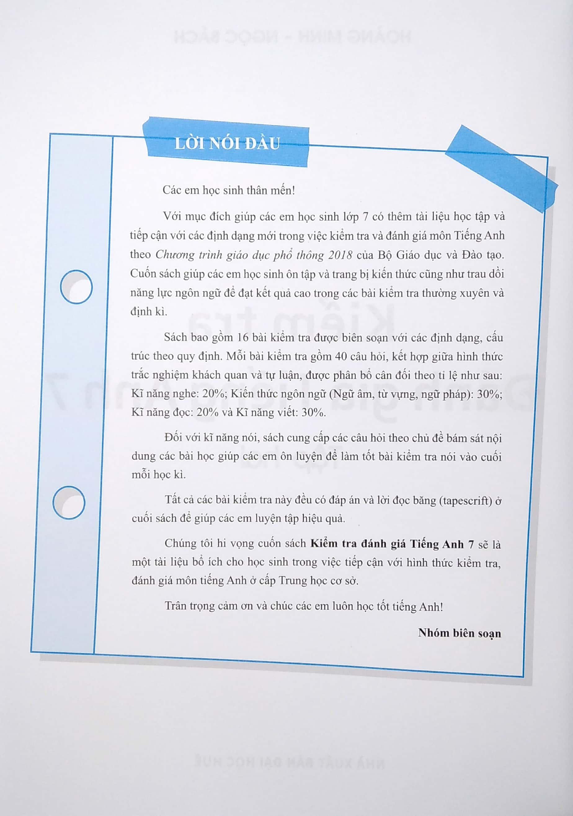 Với mục đích giúp các em học sinh lớp 7 có thêm tài liệu học tập và tiếp cận với các định dạng mới trong việc kiểm tra và đánh giá môn Tiếng Anh theo Chương trình giáo dục phổ thông 2018 của Bộ Giáo dục và Đào tạo. Cuốn sách giúp các em học sinh ôn tập và trang bị kiến thức cũng như trau dồi năng lực ngôn ngữ để đạt kết quả cao trong các bài kiểm tra thường xuyên và định kì.
