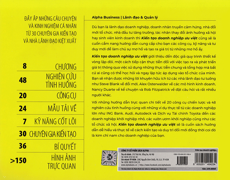 Dù bạn là lãnh đạo doanh nghiệp, doanh nhân truyền cảm hứng, nhà đổi mới tổ chức, nhà đầu tư tăng trưởng, tác nhân thay đổi ảnh hưởng xã hội hay sinh viên kinh doanh thì Kiến tạo doanh nghiệp ưu việt cũng là một cuốn cẩm nang hướng dẫn cung cấp cho bạn các công cụ, kỹ năng và tư duy mới để làm chủ sự mơ hồ và tạo ra giá trị từ những mơ hồ ấy. Kiến tạo doanh nghiệp ưu việt giới thiệu đến độc giả quy trình thiết kế vòng lặp đôi, một cách tiếp cận thực tiễn đối với việc tạo ra và phát triển giá trị thông qua việc sử dụng những thực tiễn chung và tổng hợp mà bất cứ ai cũng có thể học hỏi và ngay lập tức áp dụng vào tổ chức của mình. Bạn sẽ nhận được những lời khuyên hữu ích từ các nhà lãnh đạo tư tưởng như Steve Blank về đổi mới, Alex Osterwalder về các mô hình kinh doanh, Nancy Duarte về kể chuyện và Rob Fitzpatrick về đặt câu hỏi và rất nhiều người khác. Với những hướng dẫn trực quan chi tiết về 20 công cụ chiến lược và 48 nghiên cứu tình huống cùng với những ví dụ thực tế từ các doanh nghiệp lớn như ING Bank, Audi, Autodeck và Dịch vụ Tài chính Toyota đến các doanh nghiệp khởi nghiệp nhỏ, các vườn ươm khởi nghiệp cũng như các tổ chức xã hội, Kiến tạo doanh nghiệp ưu việt sẽ là cuốn sách hướng dẫn dễ hiểu và thực tế về cách kiến tạo và duy trì đổi mới đồng thời coi đó là kim chỉ nam cho doanh nghiệp của bạn .