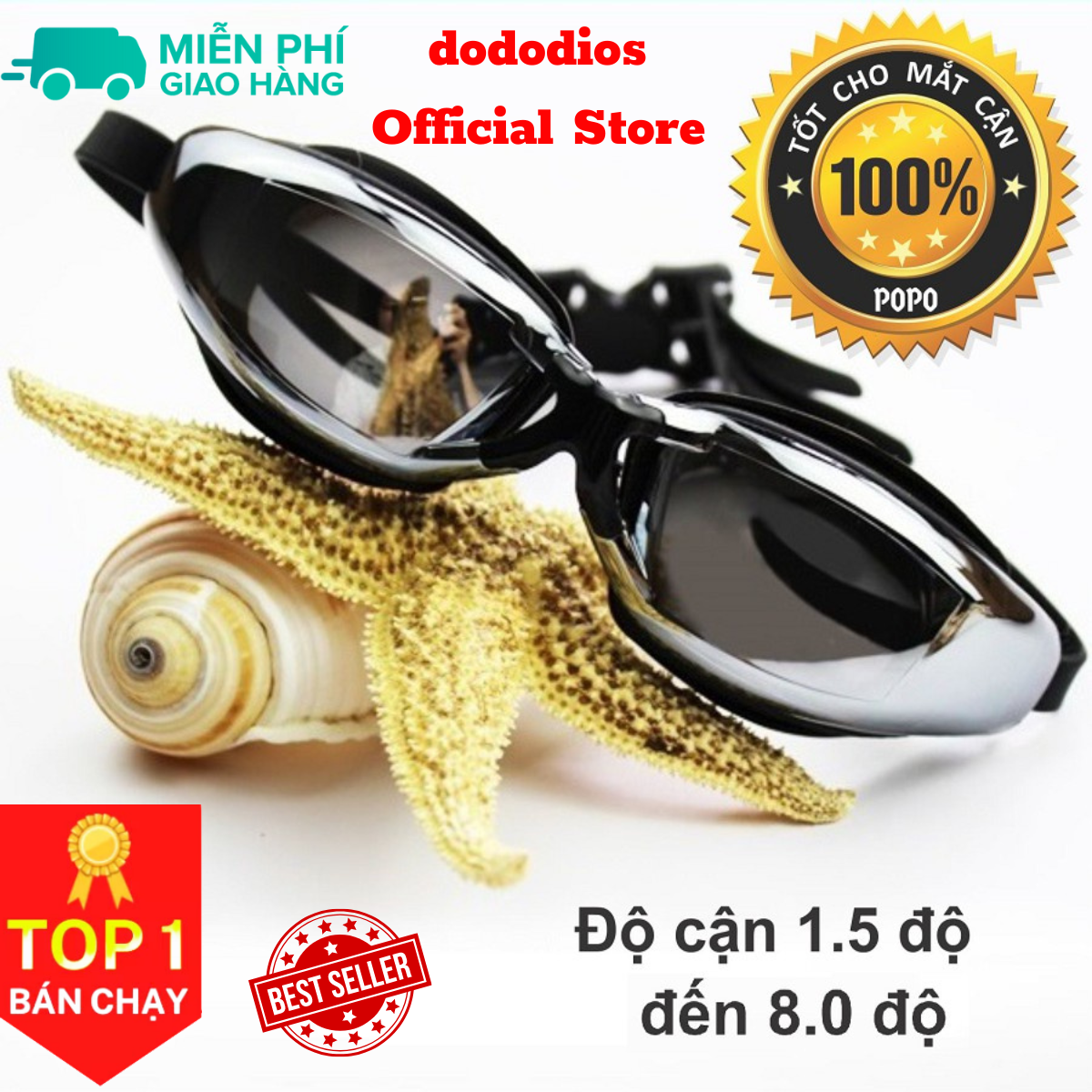 Kính bơi cận cho người lớn nam nữ có độ từ 1.5 độ đến 8.0 độ chính hãng dododios mắt kiếng bơi cận thị tráng gương chống UV ĐẶC ĐIỂM: - Kính bơi với các