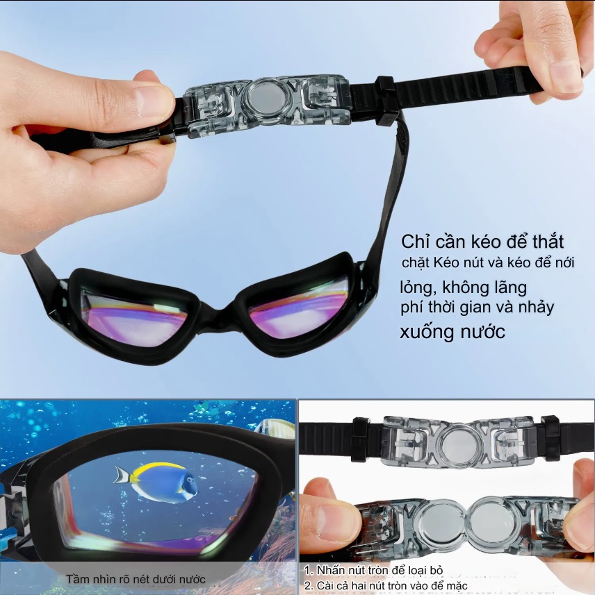 Mua tại TiktokDành cho người lớn & trẻ từ 6 tuổi Made in Japan – chất lượng chuẩn Nhật Chống tia UV tuyệt đối Chống mờ, chống nước, nhìn rõ dưới nước Dây kính đàn hồi, dễ