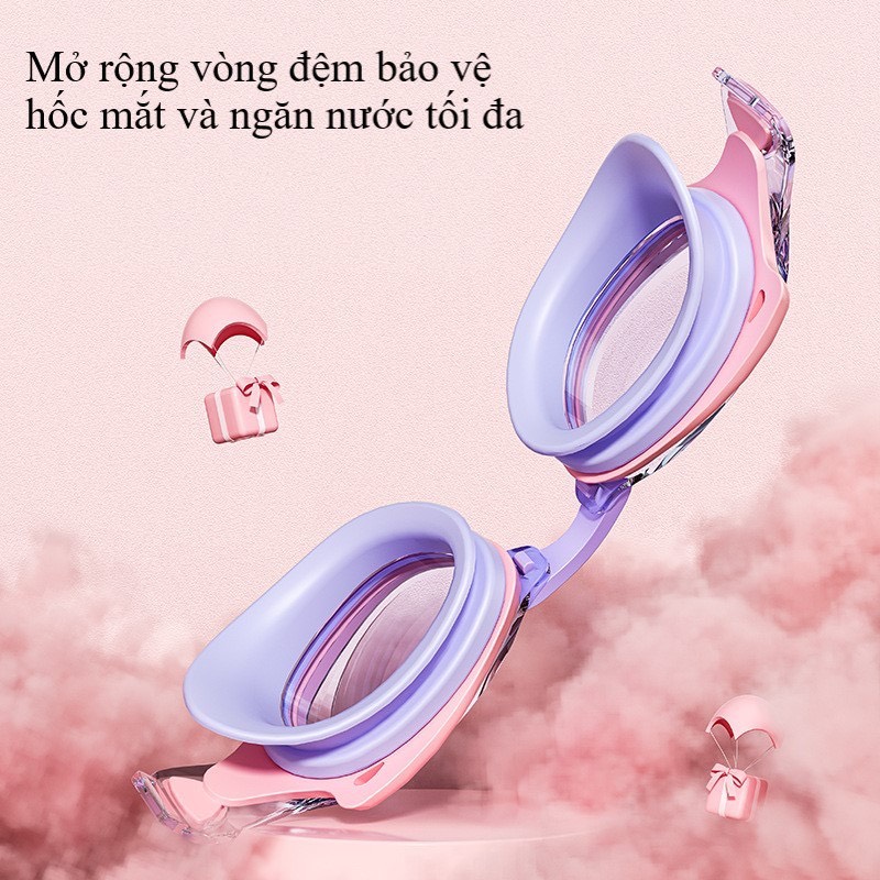 Kính bơi trẻ em không gọng, Kính bơi cho bé trai và bé gái, có nút bịt tai, góc siêu rộng