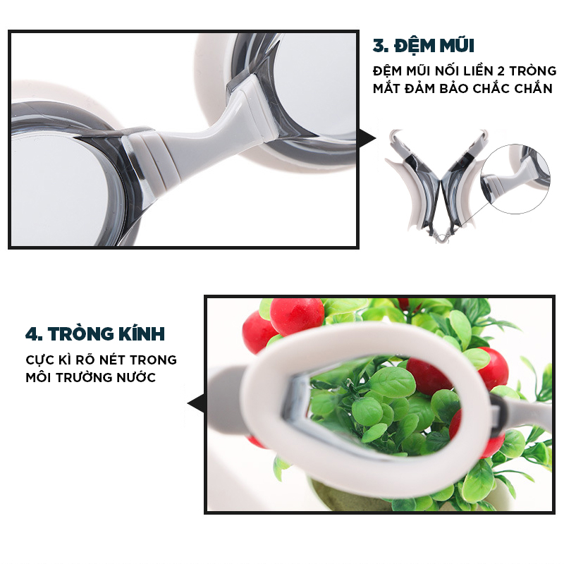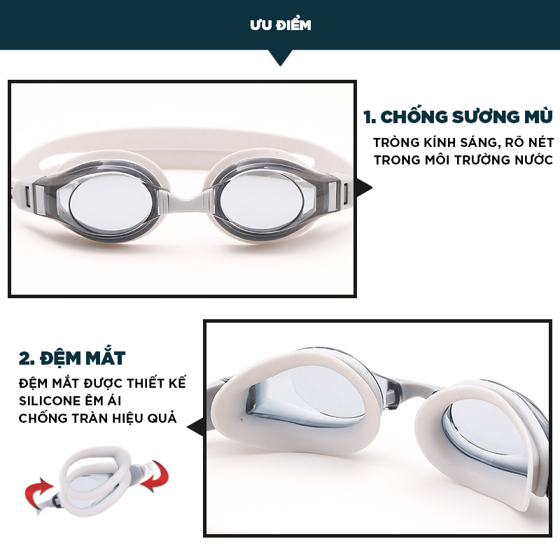 Dây đeo dễ chịu, bám sát khuôn mặt An toàn tuyệt đối dưới nước Kính Bơi Cao Cấp miDoctor Kính bơi giúp bảo vệ mắt khi hoạt động dưới nước. Hàng bảo hành 1 đổi