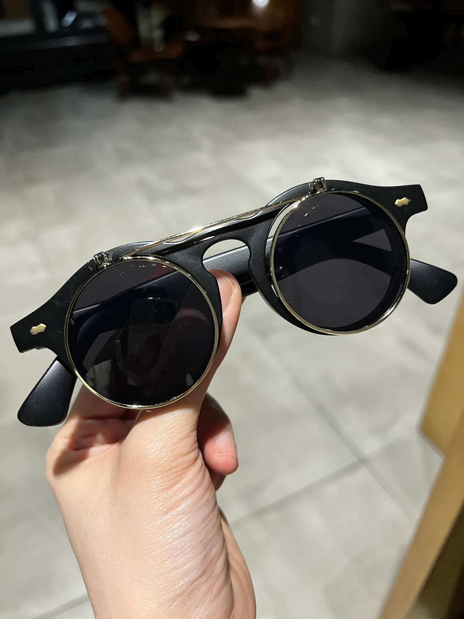 ✨Kính chống nắng Mắt tròn thầy bói 2 lớp mở nắp gọng nhựa