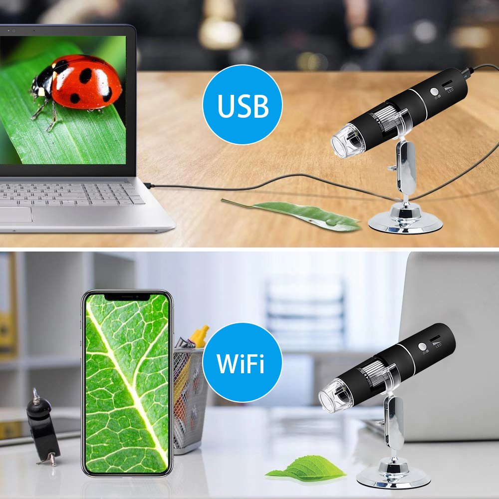 ROGTZ Kính Hiển Vi Phóng Đại 50-1000x Kết Nối Wifi/Có Dây Dùng Cho Điện Thoại, PC Độ Phân Giải 1080P Với 8 Đèn Led Trợ Sáng. WiFi Digital Microscope HD1080P 1000X USB Microscope 8 LED