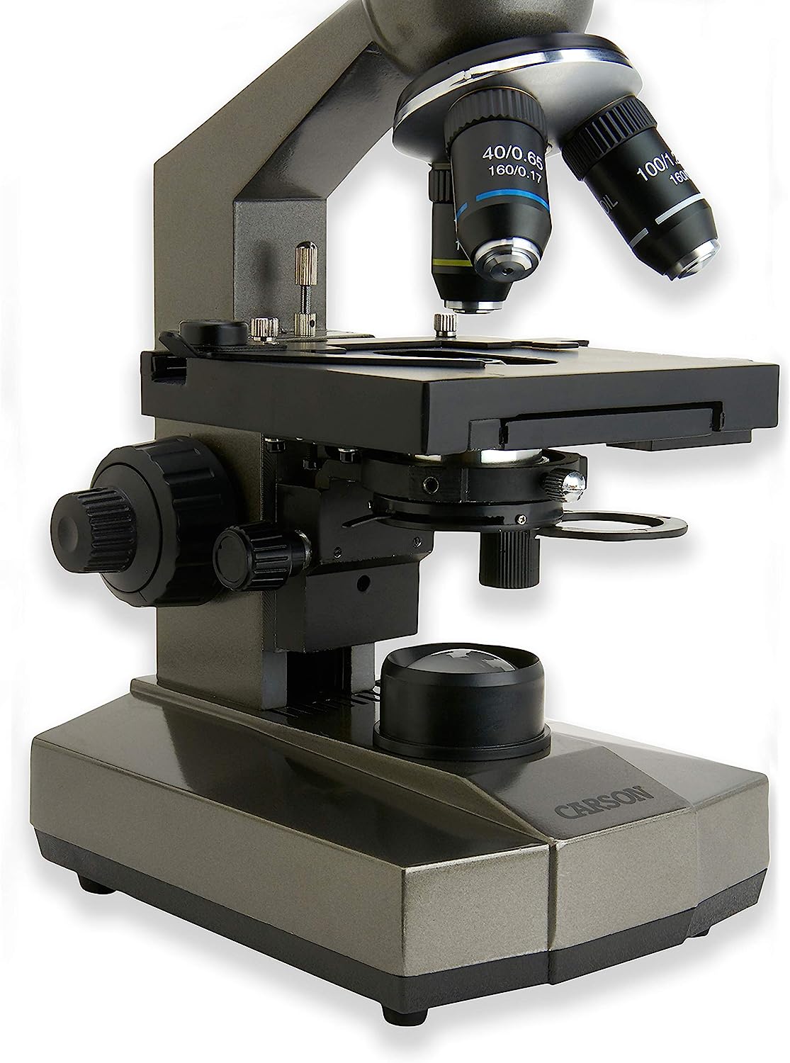 Kính hiển vi có đèn LED 100x-1000x trung cấp chất lượng cao với Bàn soi cơ học của Carson.  Kính hiển vi này hoàn hảo cho học sinh trình độ trung cấp đang tìm kiếm một thiết bị thuận tiện và tiện dụng mang lại hình ảnh sắc nét và rõ ràng.