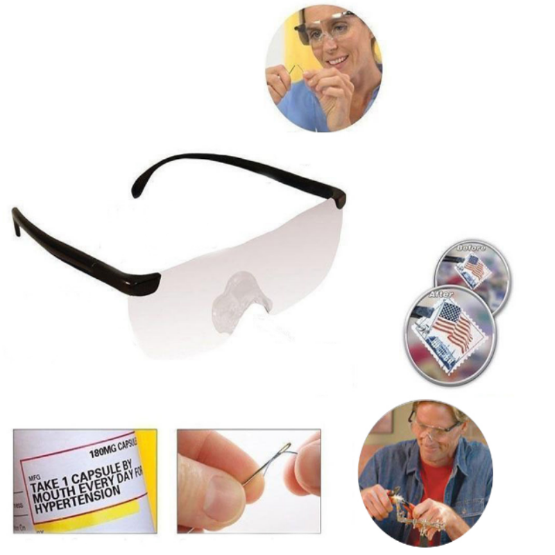 Mô tả sản phẩm Kính lúp cho người mắt kém,kính lão,Lão thị tăng 160% kính lúpDành cho người mắt kém, kính để khâu vá 206653 A Chất liệu: PC Tính năng: 1,6 lần lúp