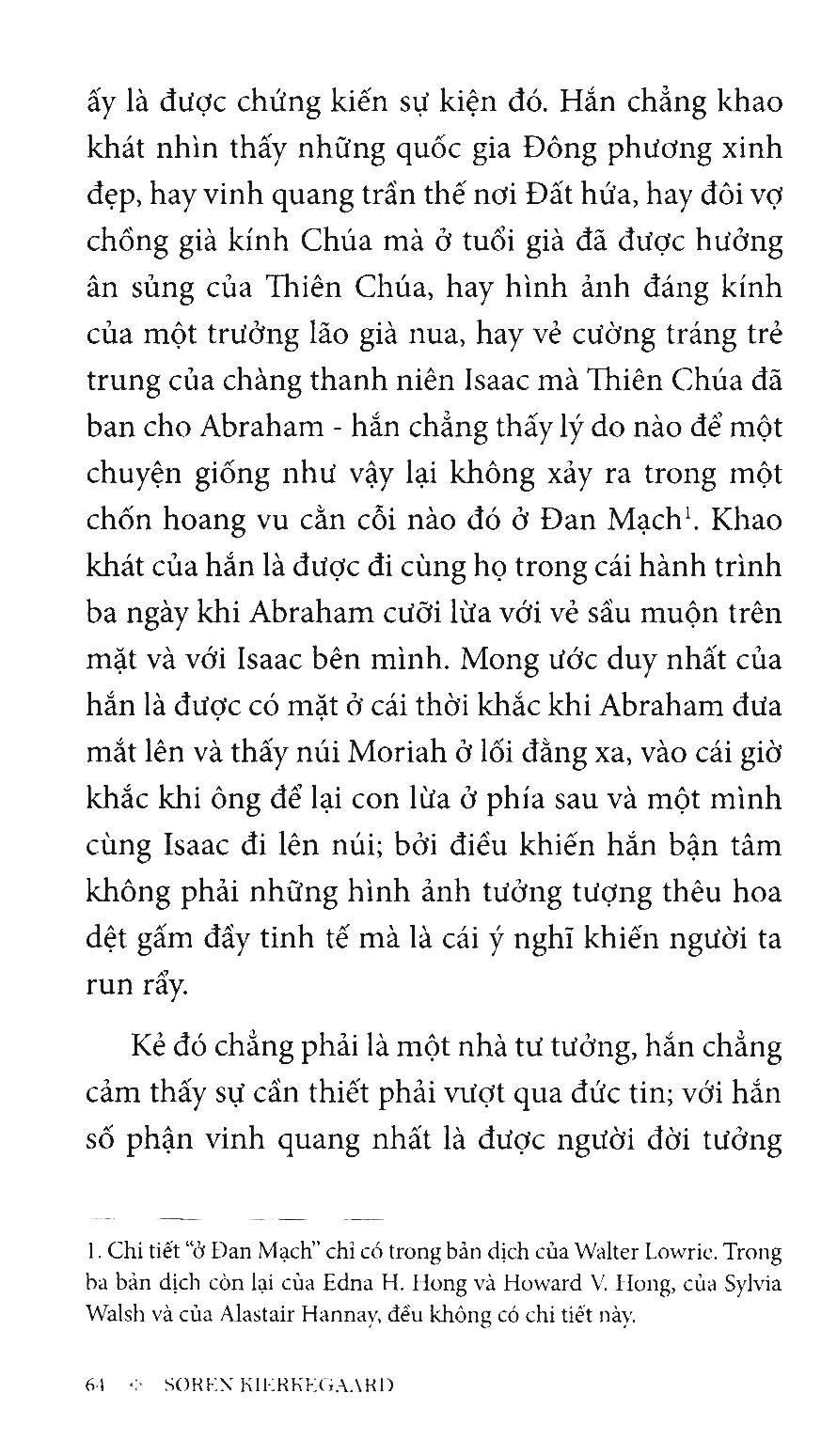 Kính Sợ Và Run Rẩy Từ câu chuyện trong Kinh Thánh Cựu Ước mô tả việc Tổ phụ Abraham tuân lệnh Thiên Chúa, sẵn sàng sát tế con trai m.ình là Isaac (thường được ngợi ca như một điển tích về sự...