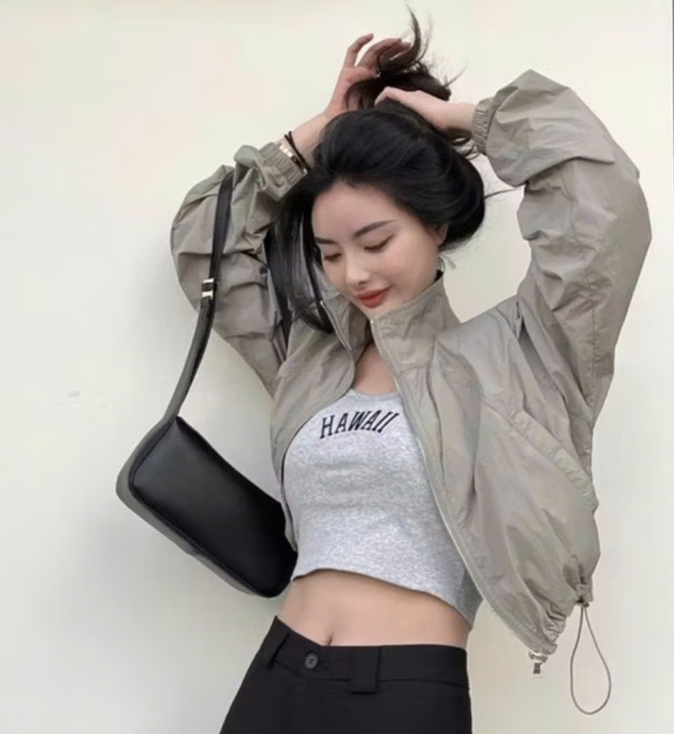 ÁO KHOÁC THU ĐÔNG THỂ THAO NỮ DÁNG NGẮN - CHỐNG NẮNG, MÁT, NHẸ - Hàng QC Kiểu dáng: Dáng ngắn cá tính, cổ đứng, tay dài, có dây rút eo, khóa kéo Chất liệu:
