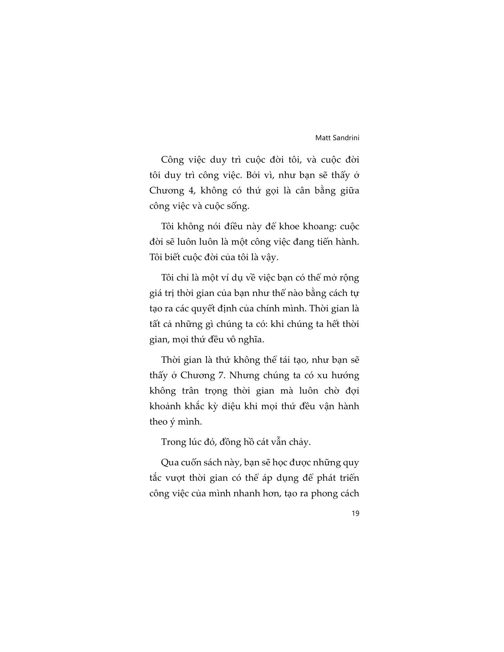 Cuốn sách sẽ tiết lộ những khái niệm đã biến đổi một số doanh nhân thành công nhất thế giới, từ trạng thái choáng ngợp đến vô vọng. Hãy tưởng tượng bạn thức dậy mà không có nỗi lo lắng nào của ngày hôm qua, chỉ có động lực để thành công ngày hôm nay. Hãy giành lại những ngày thứ Hai của bạn, tăng năng suất, làm việc ít hơn nhưng hiệu quả và tạo ra những kết quả vững chắc nhờ sự trợ giúp của cuốn sách trong tay. Bây giờ bạn đã có bí mật về tư duy phù hợp với m.ình, bạn có thể làm chủ sự tập trung của m.ình và bắt đầu làm được nhiều việc hơn trong 24 giờ mỗi ngày.