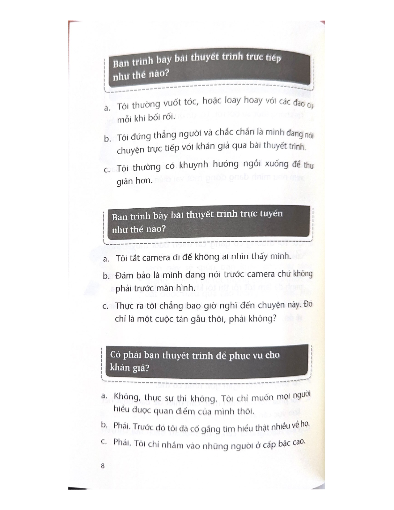 Dù bạn muốn quảng bá ý tưởng, giới thiệu sản phẩm, dịch vụ của mình, hay trực tiếp cung cấp cho khán giả những thông tin quan trọng, thì thuyết trình cũng là một kỹ năng rất quan trọng và cần thiết trong môi trường làm việc. Một số người sinh ra đã là những nhà thuyết trình tự nhiên, một số người khác lại thấy việc này rất khó khăn. Nhưng khi đã am hiểu việc thuyết trình, bạn sẽ thấy việc này không đáng sợ, thậm chí còn rất thú vị.