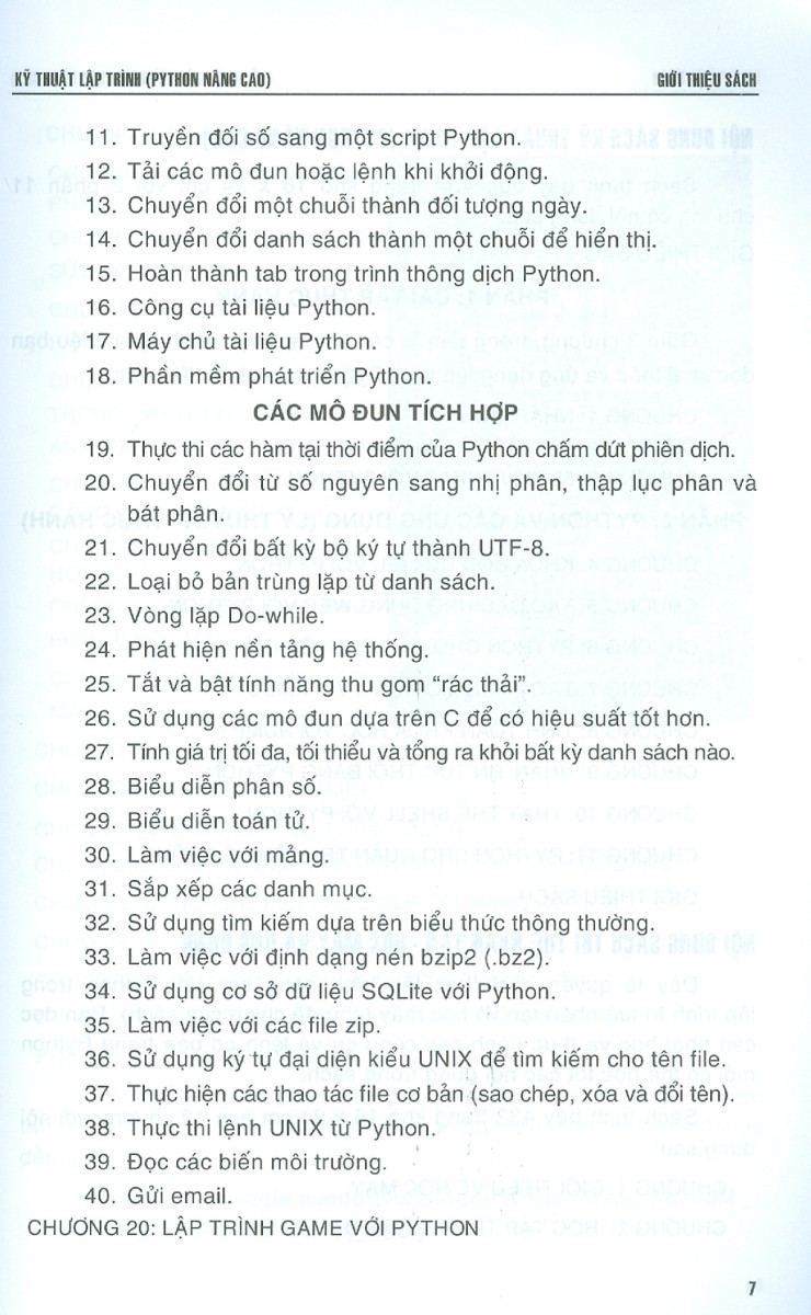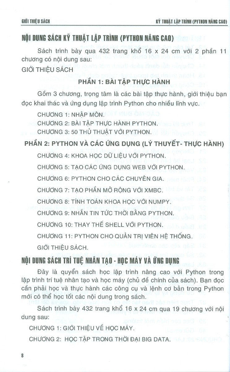 Mua tại TiktokKỹ Thuật Lập Trình Python Nâng Cao Về cuốn sách này Đến bất kỳ hiệu sách lớn nào (trực tiếp hoặc trực tuyến), bạn sẽ tìm thấy rất nhiều sách Python. Nếu đã quen với việc đọc sách bạn sẽ có một cái nhìn tổng quan nhanh chóng giúp bạn quyết định liệu cuốn sách này có thực sự phù hợp với bạn hay không. Cuốn sách này mong muốn phổ cập ngôn ngữ Python đến với nhiều bạn có mong muốn tìm hiểu lập trình máy tính. Sách được viết cho các đối tượng chính sau: Không yêu cầu người học có kinh nghiệm lập trình trước đó. Học sinh phổ thông. Sinh viên chuyên hay không chuyên ngành CNTT. Các bạn mong muốn trở thành lập trình viên Front-end, Back-end,