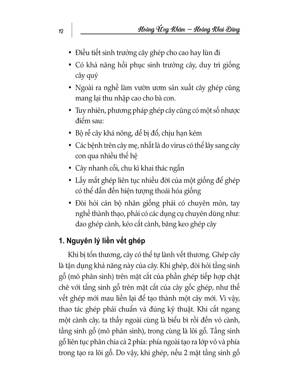 Mua tại TiktokSách cung cấp một số kỹ thuật cơ bản về ghép cây và giâm cành, được tổng kết từ thực tế nghiên cứu và sản xuất giống cây ăn quả trong nhiều năm, với các thao tác được minh họa bằng hình vẽ cụ thể, có thể áp dụng để tự sản xuất cây giống. Tập 1 gồm hai phần: I. Giới thiệu kỹ thuật nhân giống cây ăn quả bằng phương pháp ghép cây và giâm cành; II. Thực hành: Lựu, Roi, Nho, Cam, Bưởi, Nhãn, Xoài, Táo, Lê,…