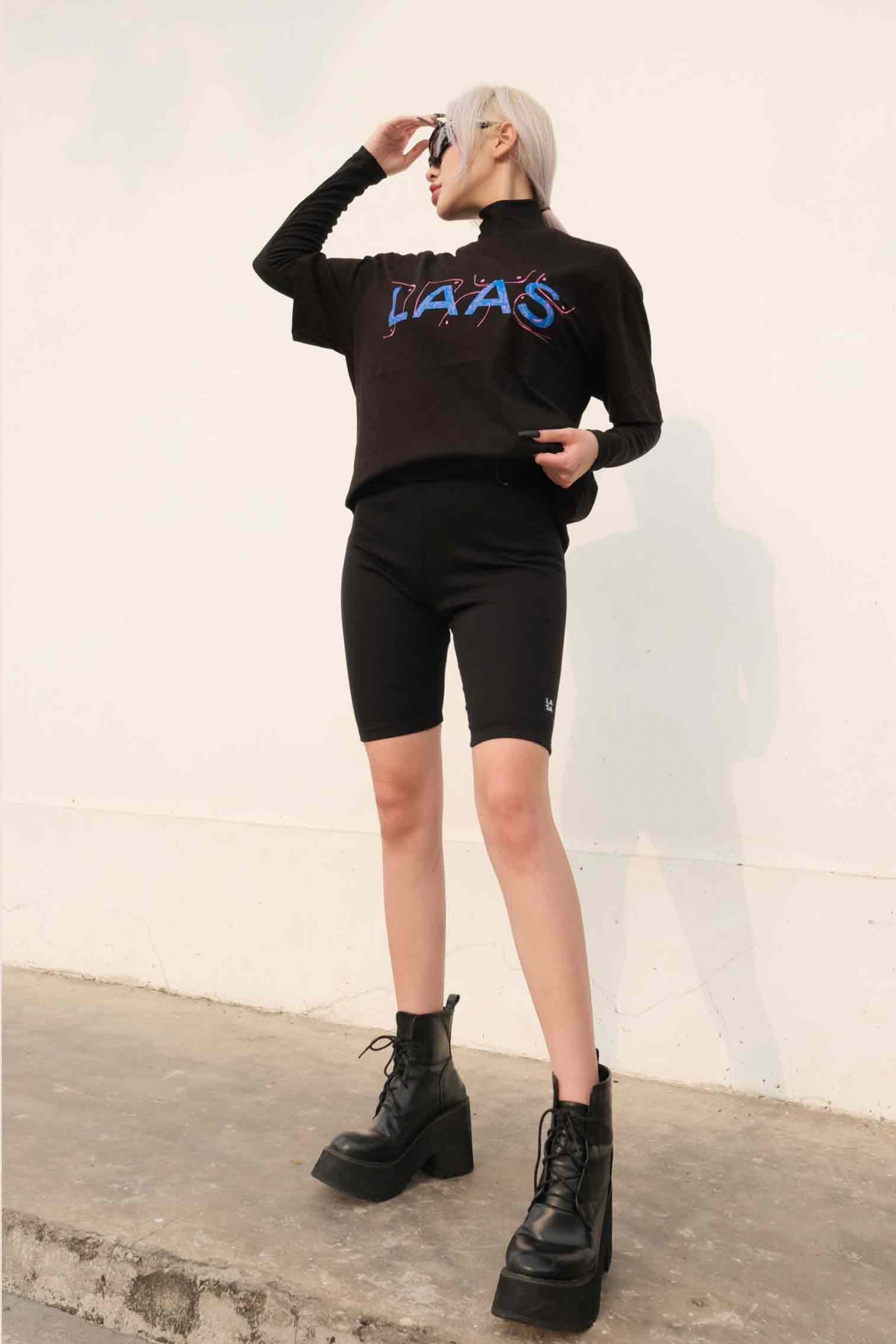 Mua tại Tiktok100% COTTON 2 CHIỀU, DÀY DẶN THOÁNG MÁT ÁO MÀU ĐEN FORM RỘNG ĐIỂM NHẤN HÌNH IN CHỮ LAAS MÀU XANH, HỒNG